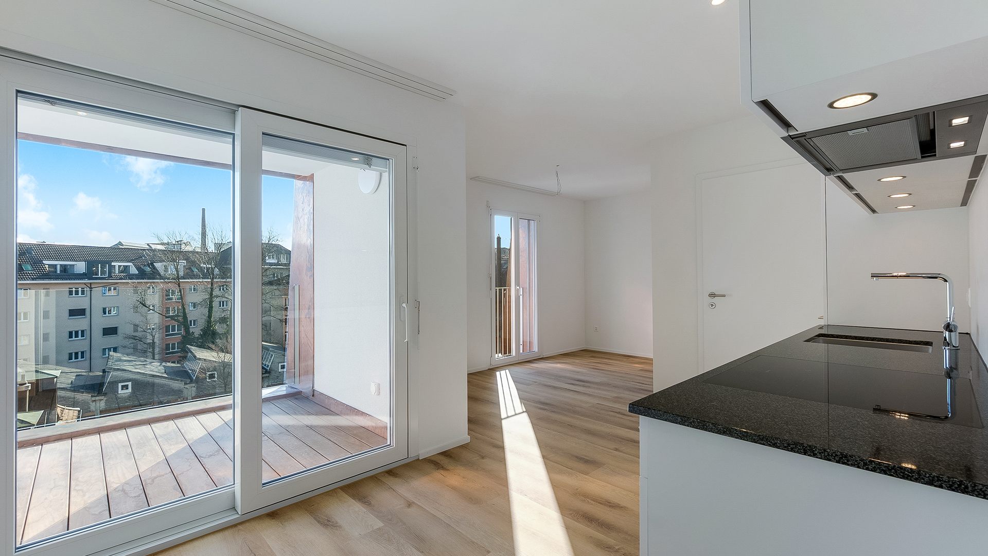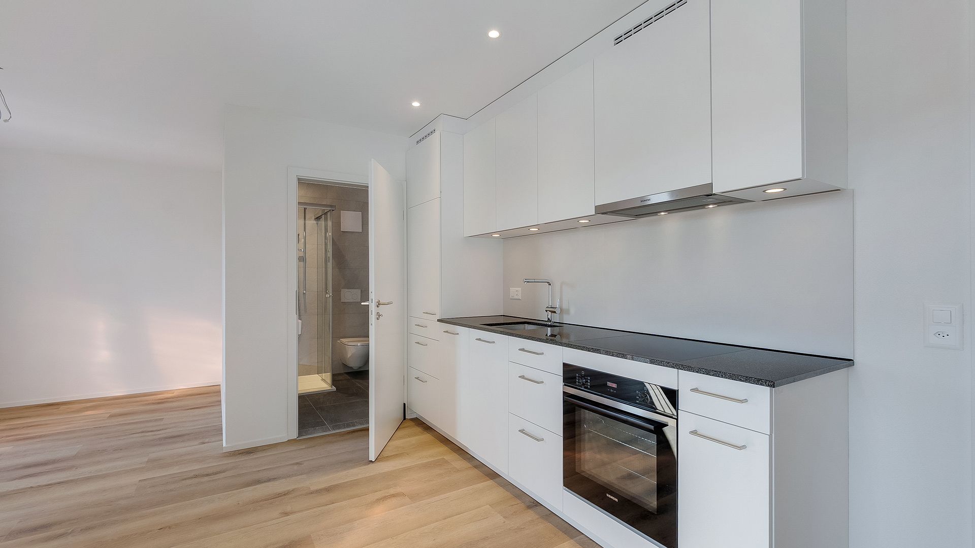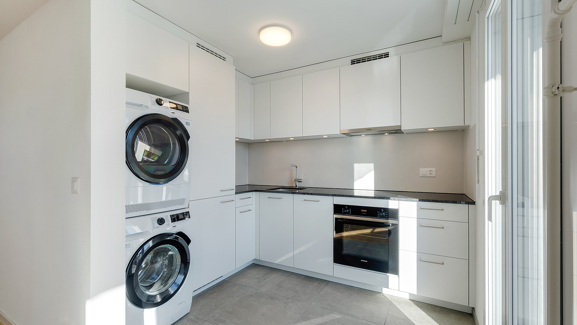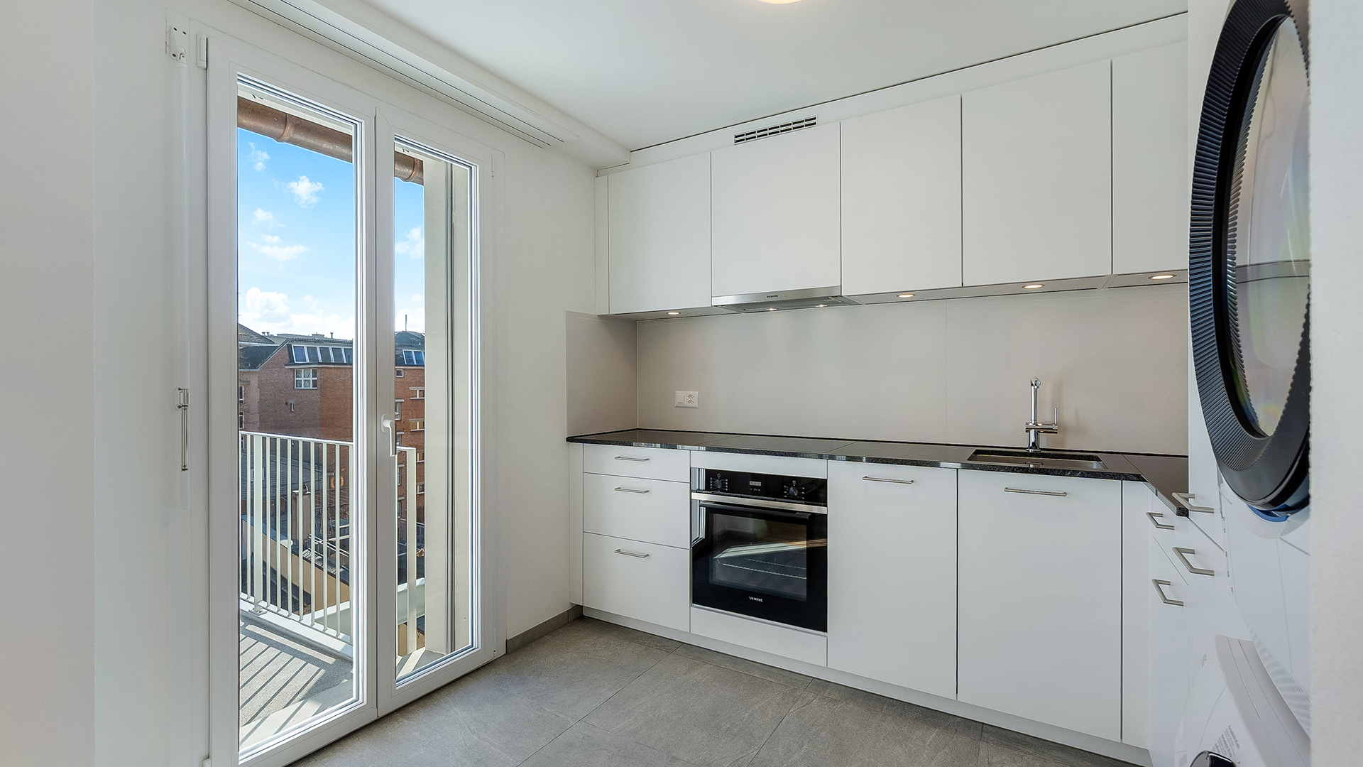 In den Wohnungen sind moderne Küchen mit Geschirrspüler,